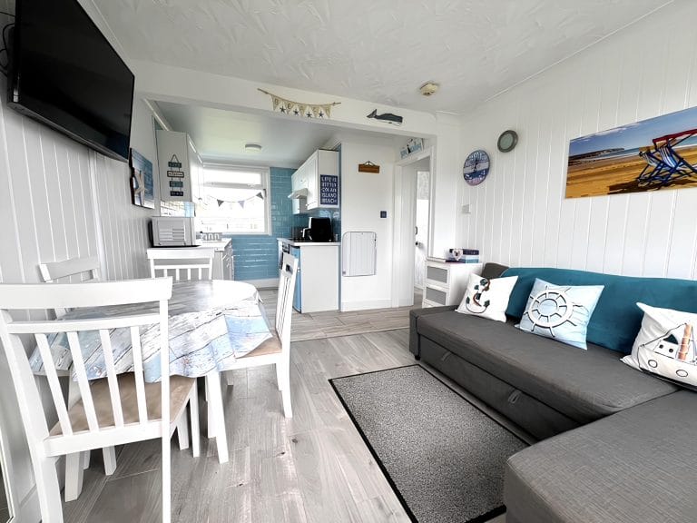 The combined lounge and diner consists of:- Corner sofa bed (comfortably sleeps 2 & chalet can sleep up to 6 people)